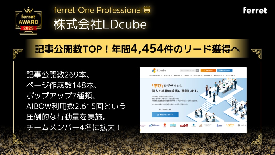 ferret One Professional賞 受賞 株式会社LDcube様のご紹介スライド
