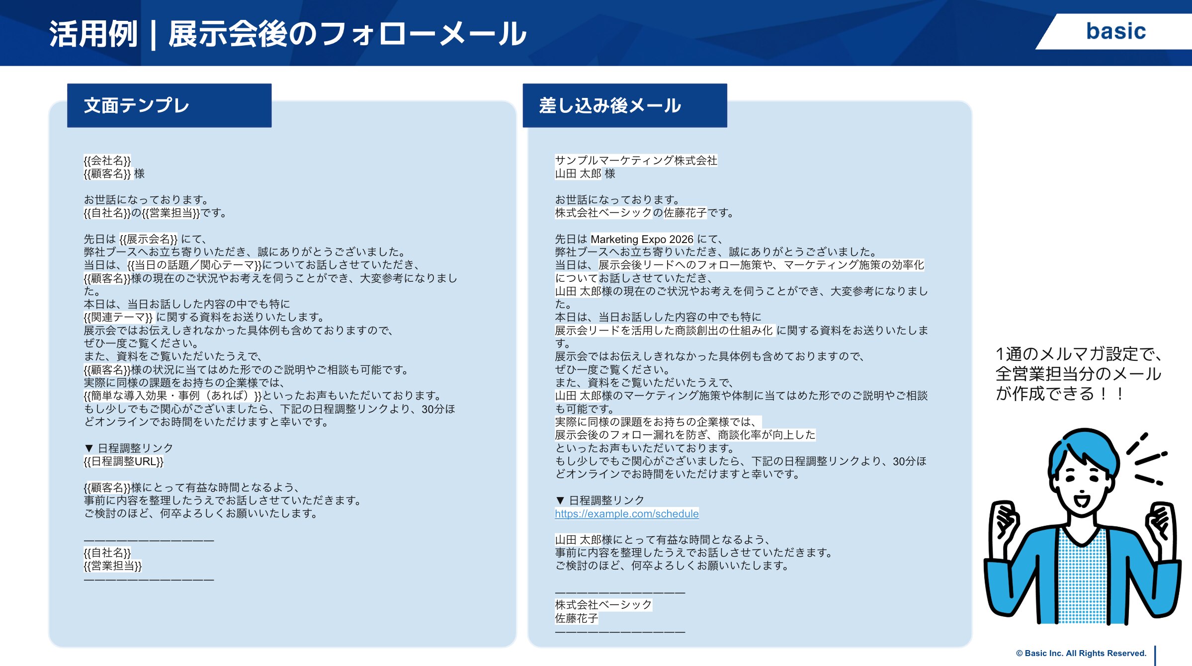 営業担当者・営業担当者メールアドレスの変数が使えるようになったことで、様々な活用方法が増えました。