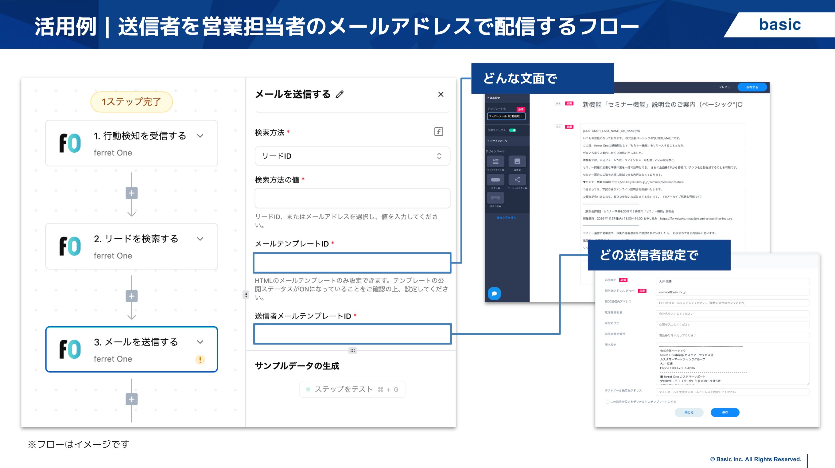 ※ メールマガジン機能を利用する場合、送信元のアドレスは共通のもの(例:info@basicinc.jp)になります