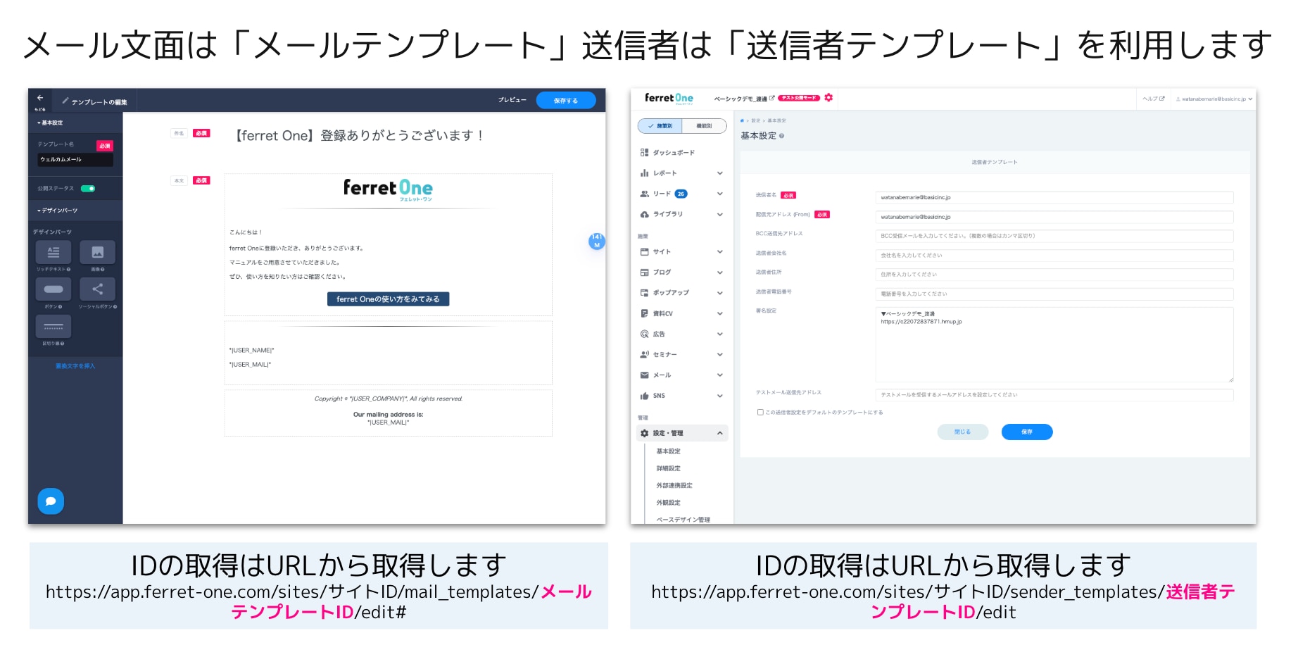 workrun側の接続方法など詳細のヘルプは、workrunのヘルプページをご確認ください。メールテンプレートIDや送信者テンプレートIDは該当のテンプレートを開いたURLから取得が可能です。