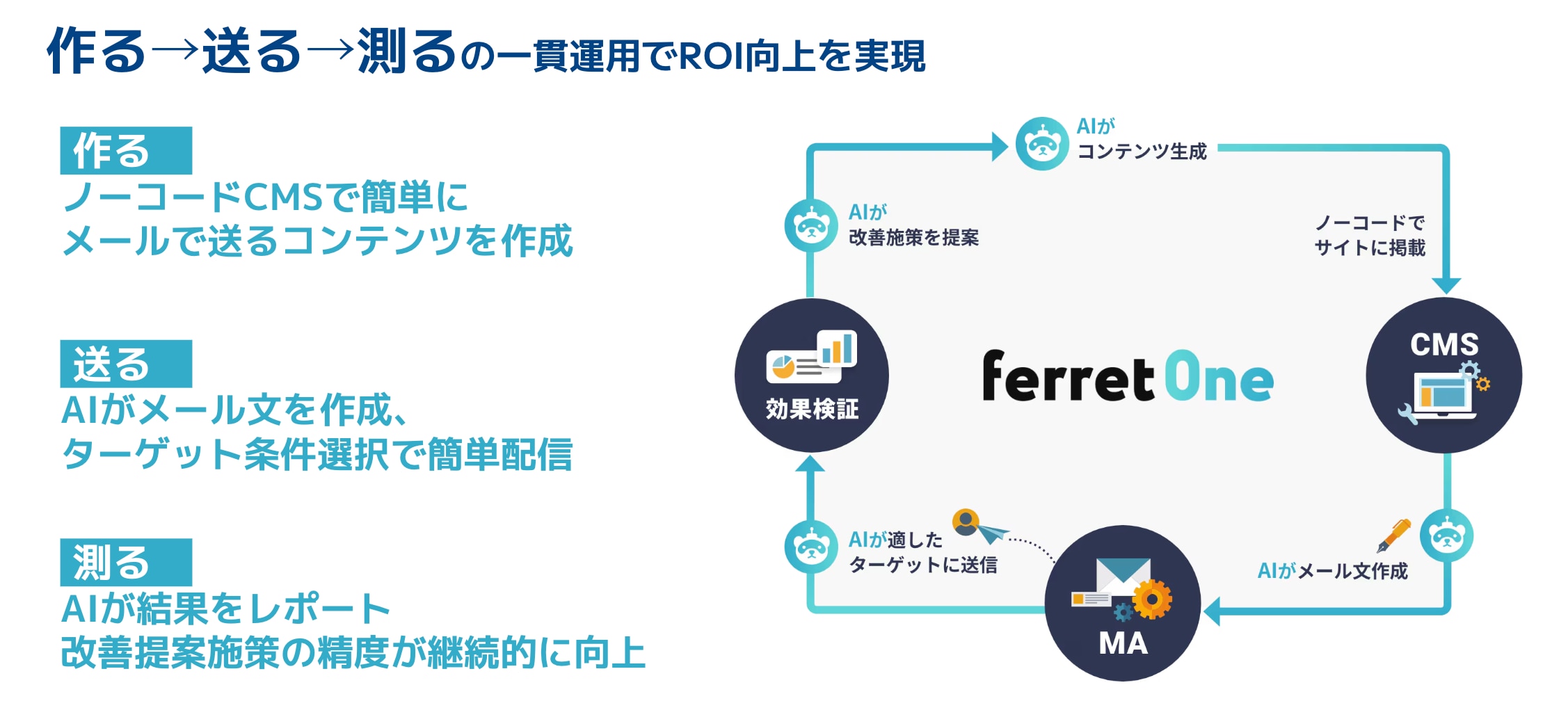 ターゲット情報、施策の実行、そして振り返りまでをferret One上に集約することで、マーケティング施策のPDCAをより速く、より精度高く回せる世界を実現していきます。