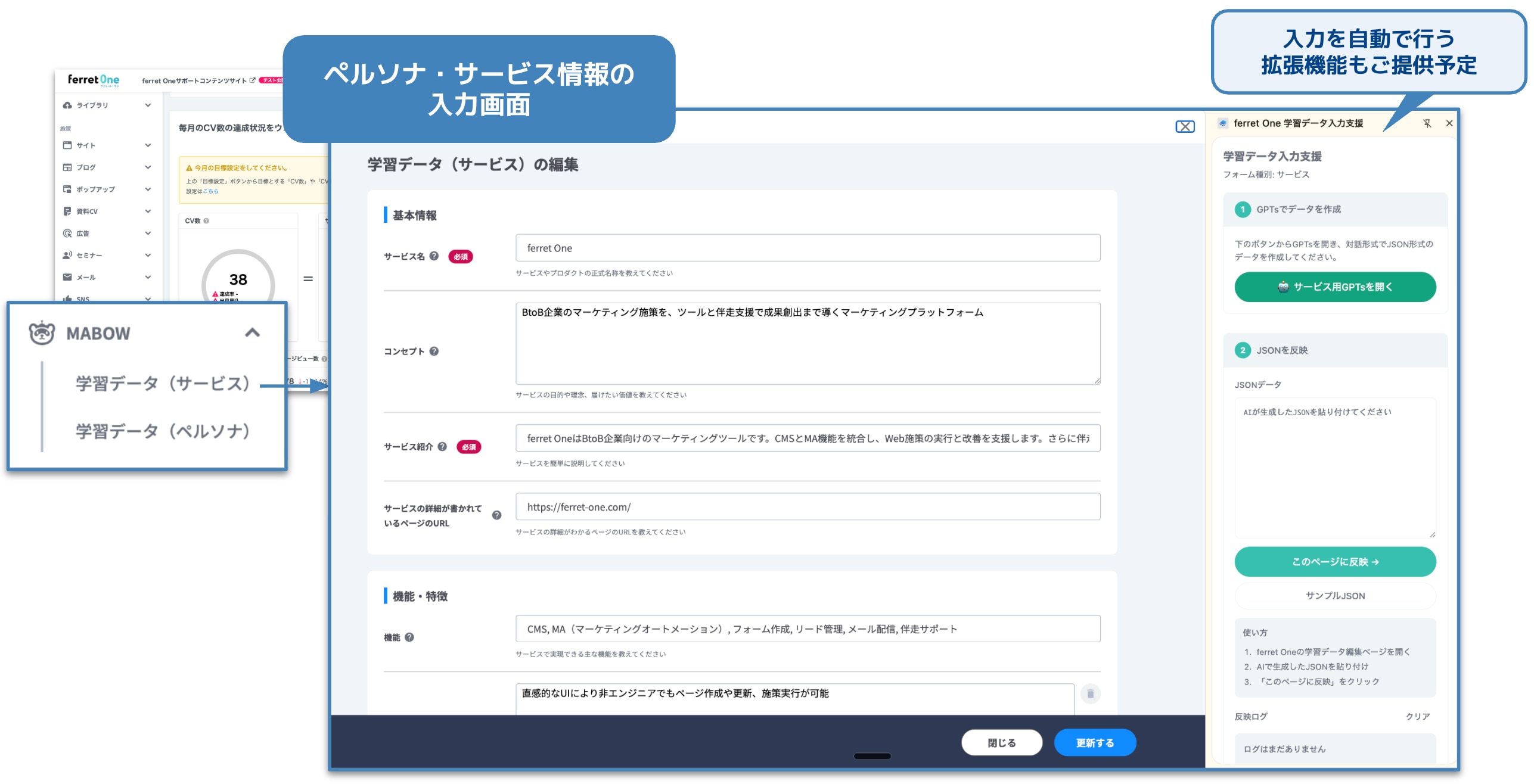 サービス情報・ペルソナ情報を入力できる【Chrome拡張機能】をご用意しています。併せてご利用ください。