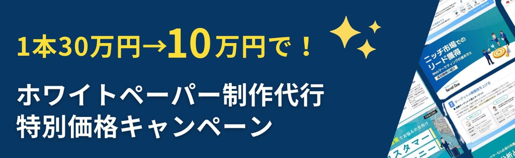 ferret Oneの「ホワイトペーパー制作代行」を1本30万円→10万円でご制作する大値引きを実施中!