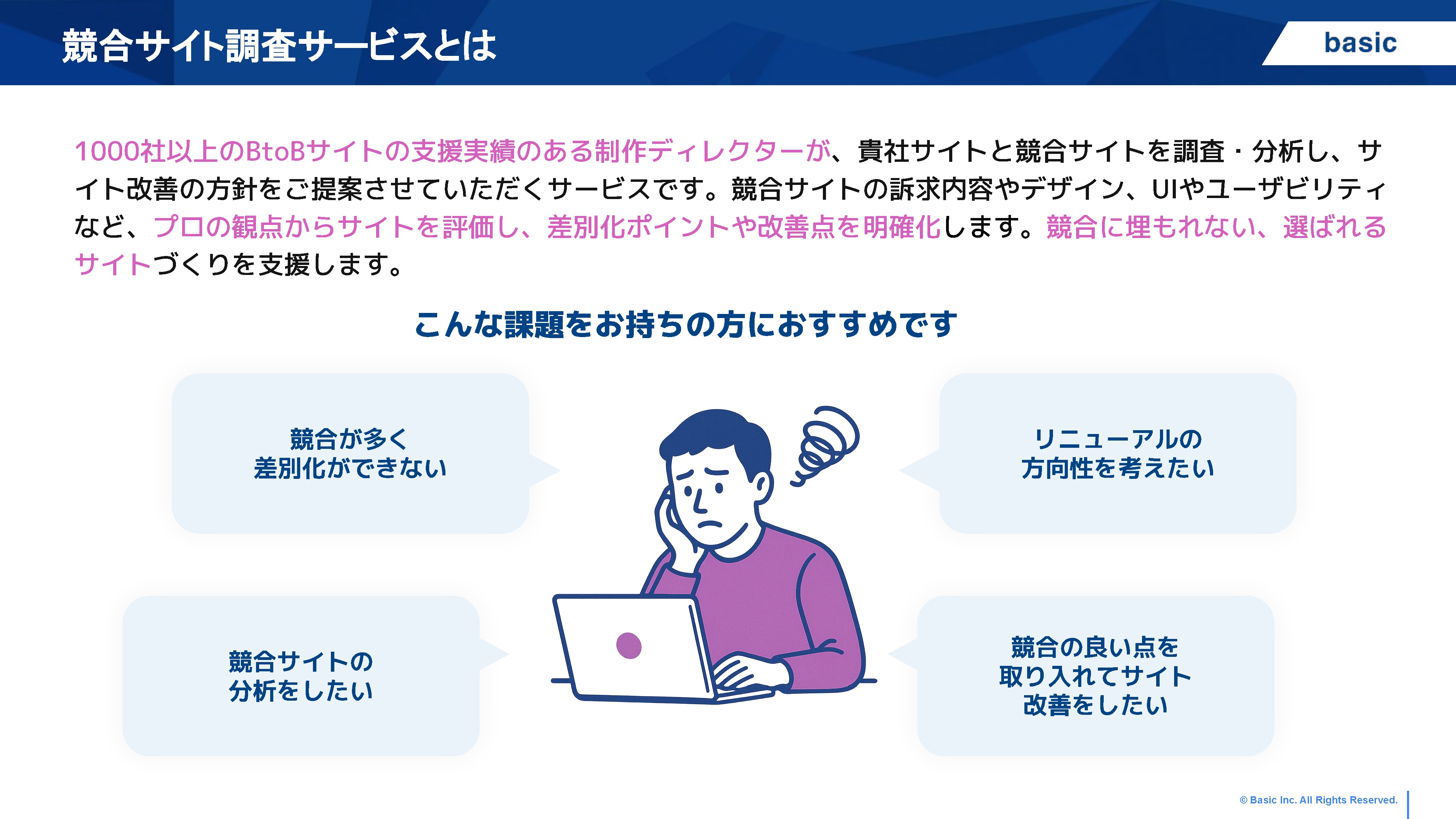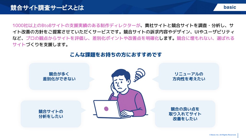 1000社以上のBtoBサイトの支援実績のある制作ディレクターが、ヒューリスティック分析・競合サイト調査で改善策をご提案します