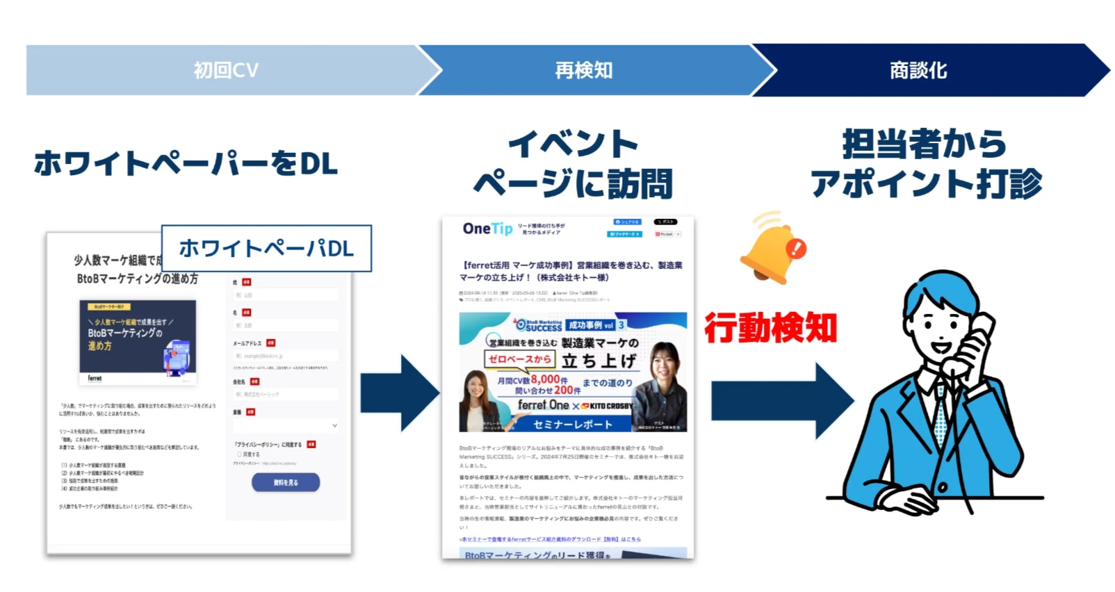 一方、行動検知は『このページを見た』という明確な事実に基づきます。営業としても『なぜこの人にかけるのか』が明確で納得感があります。