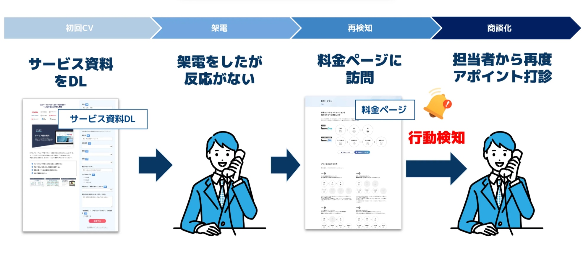 この記事では、ferret インサイドチームで行動検知を利用したことで、効率的にリードの温度感を測定し、最適なタイミングでアプローチすることに成功した事例を紹介しました。