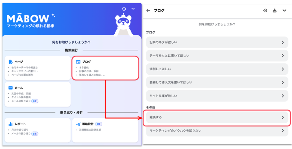 MABOW は、BtoB マーケティングに特化した AI アシスタント機能 です。