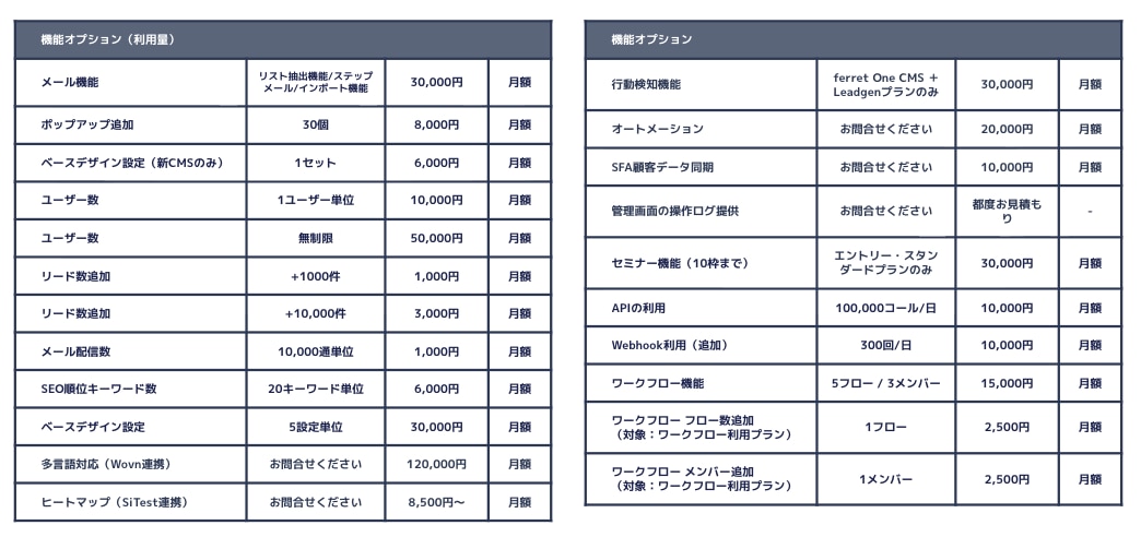 「ferret One CMS +リードナーチャリングプラン」以上でご利用いただけます。