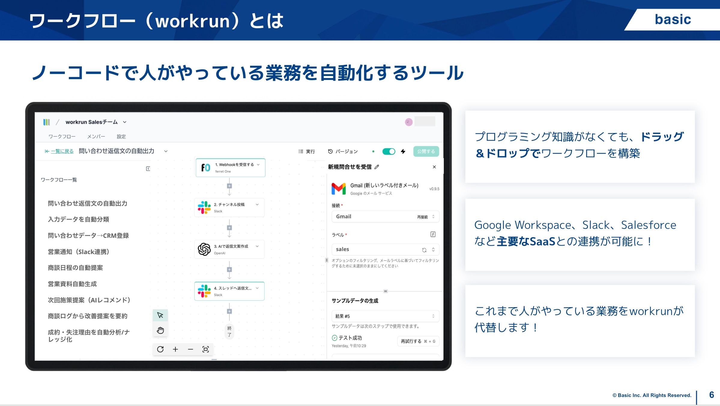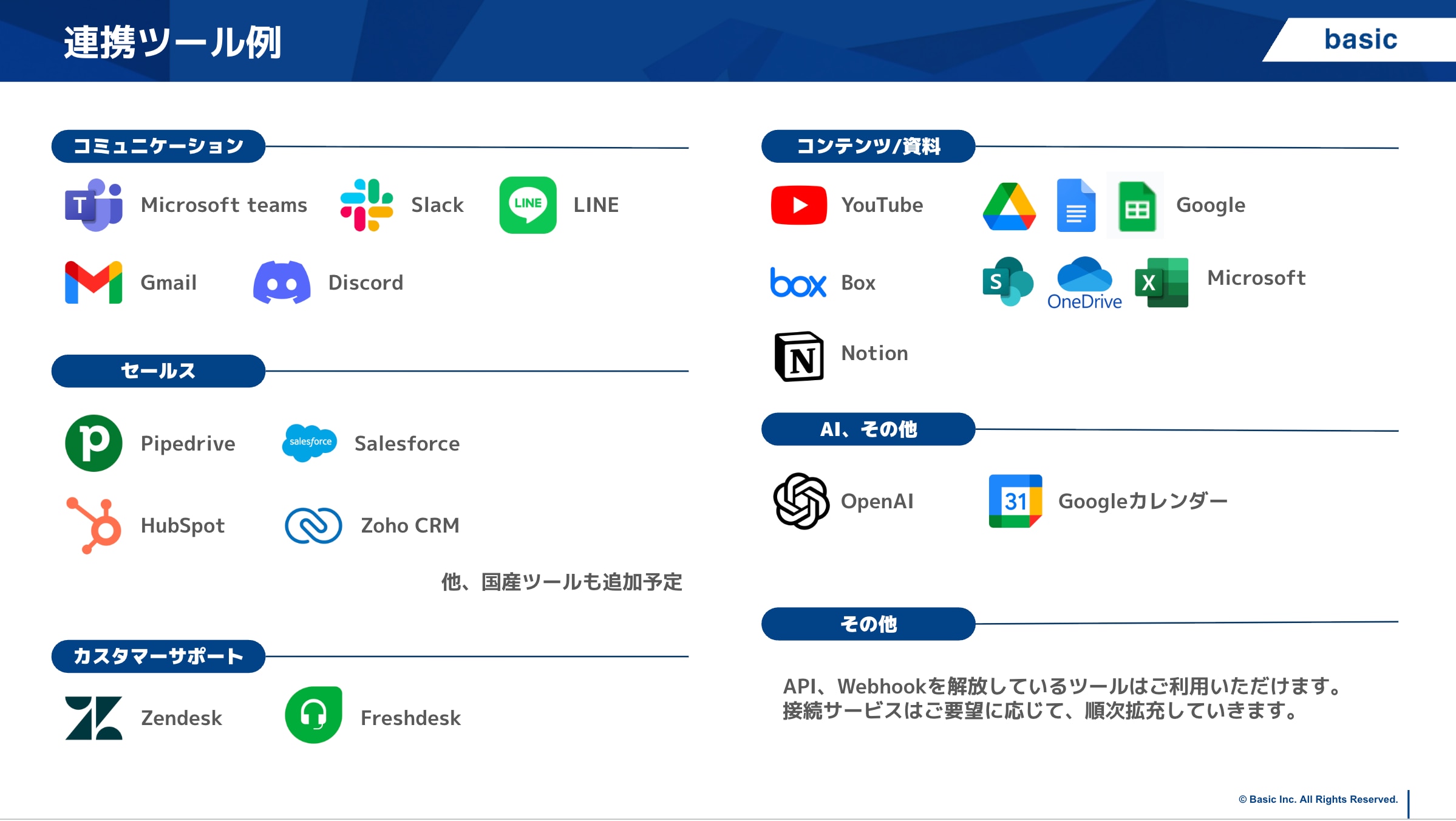 国内のBtoB企業の約8割が抱えている「ツール間のデータ連携に課題を抱えている」という課題を解決する「ワークフロー機能」のご紹介資料です。本資料では、ワークフロー機能で連携できるツールや活用方法、料金プランを一覧で確認できます。