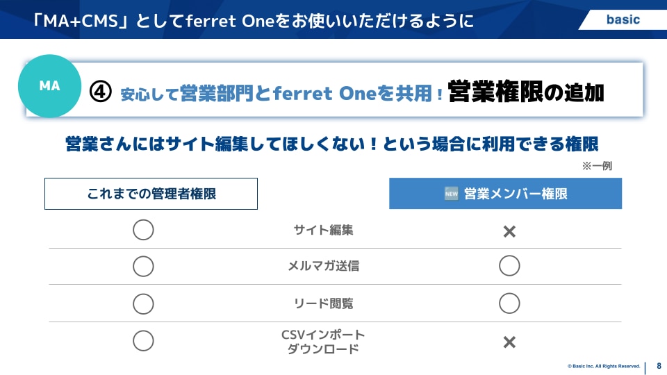 また、 MAプランのお客様から非常に多くの要望をいただいていた「営業向けの権限」も新たにご用意します!