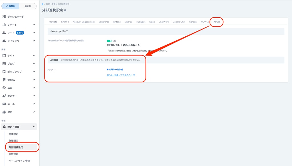 今回のAPIの機能は「ferret One CMS+ナーチャリング」プラン以上のお客様、または「ferret One for MA」のお客様に適用されます。
