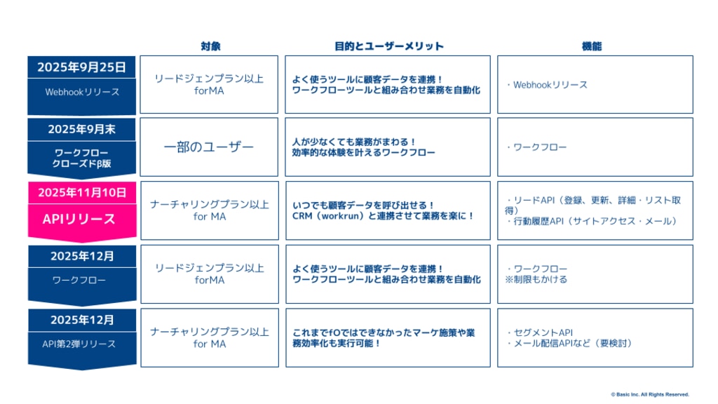 第1弾のリリースでは、「リード情報API」と「行動履歴API」の2つをリリースいたします。