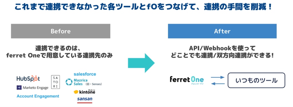 ferret Oneでは、こうしたツール分断による非効率を解消するため、APIを通じて各種ツールとのデータ連携を可能にしました。これにより、マーケターは煩雑なデータ移行や設定作業から解放され、より本質的な企画立案や戦略設計に時間を使うことができます。