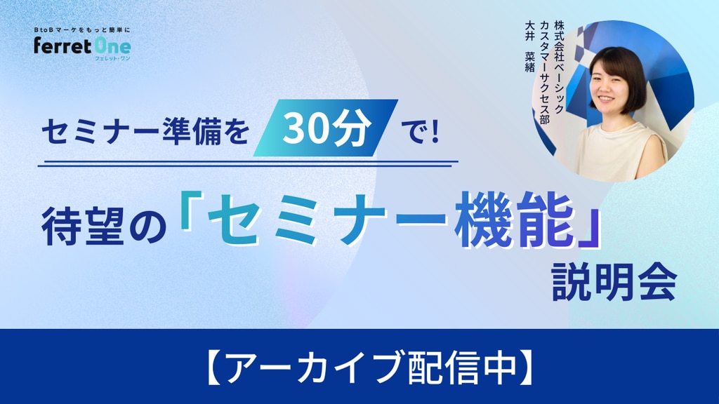 このたびferret Oneに、マーケターのセミナー運営業務を大幅に効率化する新機能「セミナー機能」が追加されました。